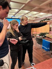 The week progressed in increasing intensity, with students first learning camera work, shot formats, production, set design, animation, lighting, and audio. All tried their hand at stop motion animation, and all were involved as the art department, generating B-roll, lighting. Siiri Ruccella-Puri prepped the on-camera talent with a full hair & makeup department and Ingrid Randoja guided the research for the student interviewers.